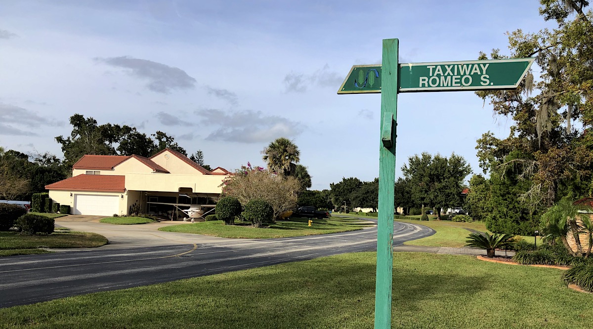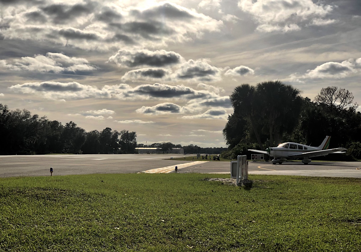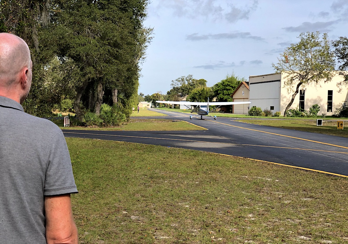 Jetzt müssen wir erst einmal zur Seite gehen, hinter uns nähert sich ein Motorengeräusch, eine Cessna taxelt zu ihrem Wohnhaus, das Fenster lässig geöffnet, es hat weit über 20 Grad im Florida-November.
